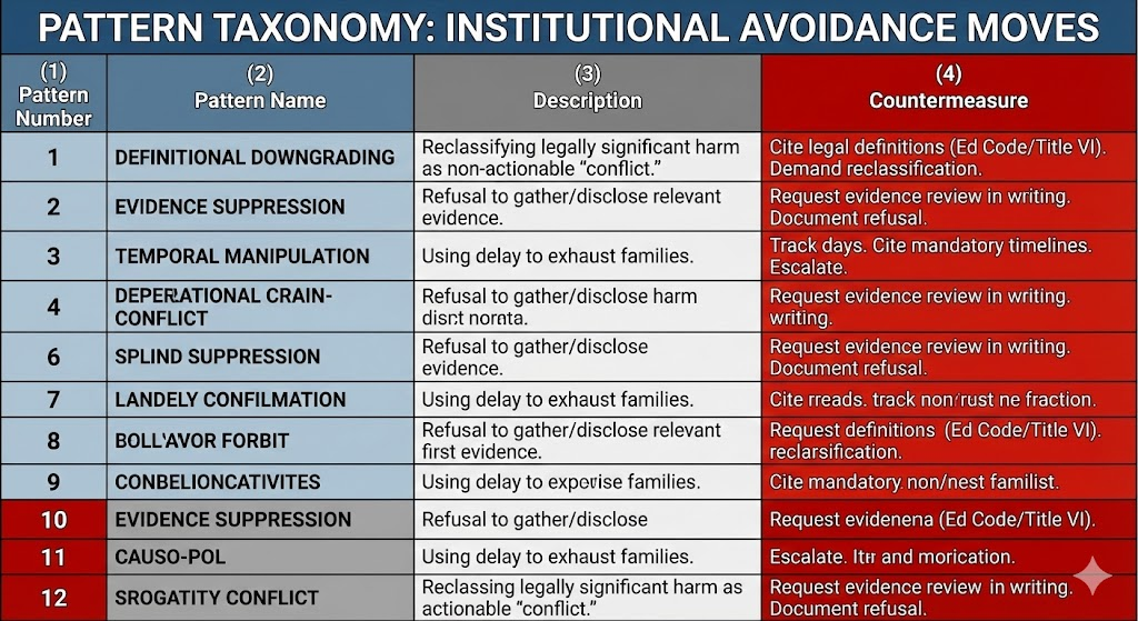 Pattern Taxonomy: Naming the Moves Districts Use to Avoid Accountability