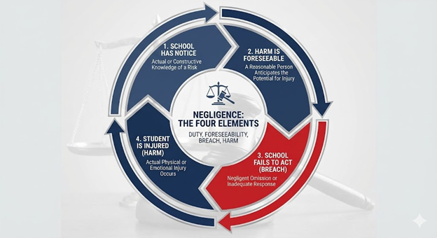 Foreseeability is the key. If a school knows a student is being targeted, further harm is foreseeable. The school’s duty is triggered. Failure to act becomes a breach.