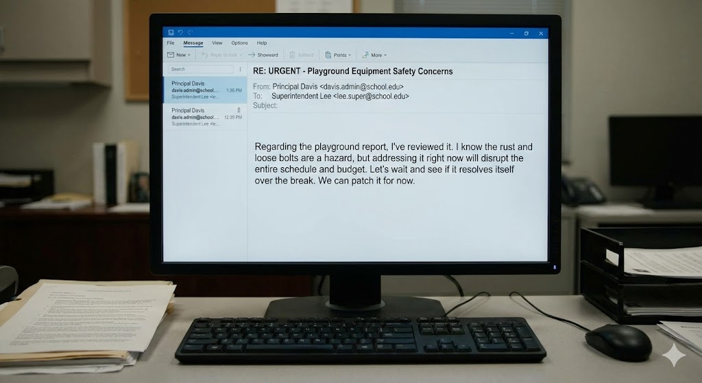 Example: A bathroom has been the site of twelve documented assaults over six months. Parents have sent written complaints. The principal’s own safety audit identified it as “high risk requiring supervision.” The school assigns no monitor because “we don’t have budget.” Another assault occurs. This is gross negligence—actual knowledge, documented pattern, conscious choice not to act despite known danger.
